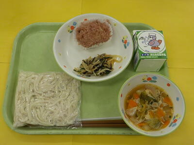 牛乳 鶏ねぎゆず塩うどん だし巻きたまご ずんだもち