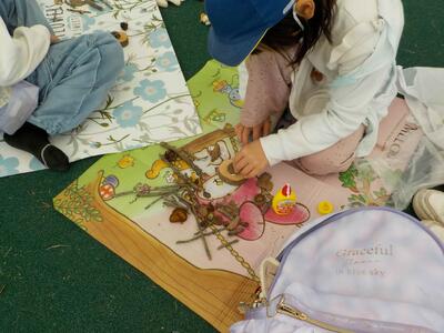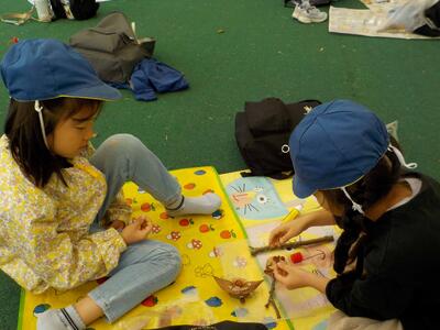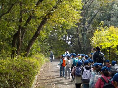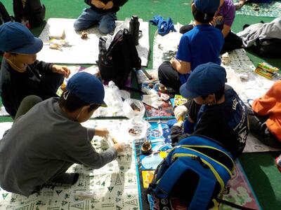 2年生が、生活科校外学習で森林公園に行ってきました。生活科の学習の一環として自然に触れること、また、校外学習をとおして、友達と仲良く過ごすことを目指して出かけました。森林公園では、大きな木々や様々な木の実、生き物を見つけるたびに驚いたり、喜んだりしていました。また、許可をいただいて自分で集めた実や葉を用いて「木の実クラフト作り」にも取り組みました。一人一人が工夫して組み合わせ、楽しそうに取り組んでいました。広場で思い切り遊んだことも思い出となりました。しっかりめあてを達成することができました。