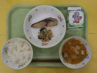 牛乳 ごはん ぶりの照り焼き 卯の花炒め のっぺい汁