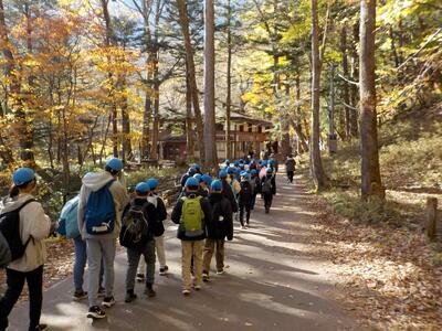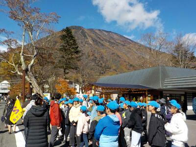 6年生が栃木県日光市方面へ修学旅行に出かけました。気温は鴻巣市よりも低く、空気は冷たいですが、好天に恵まれ、予定通り活動することができました。木々の葉が赤や黄色に色づき、秋を感じることができました。また、グループ活動や部屋での活動も協力して行うことができました。思い出に残る修学旅行となるよう、明日も自然や歴史を学びながら、友達との絆も深めたいと思います。