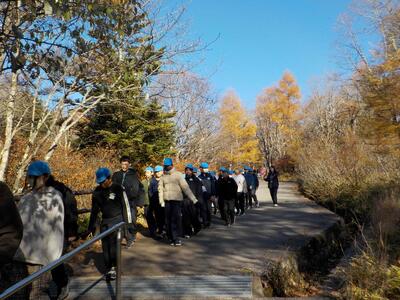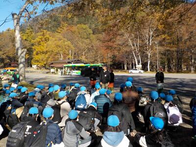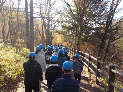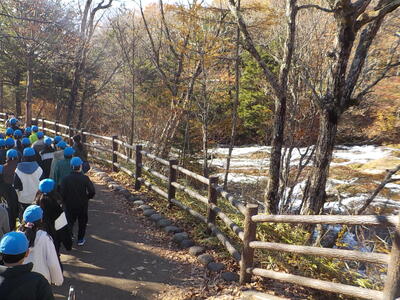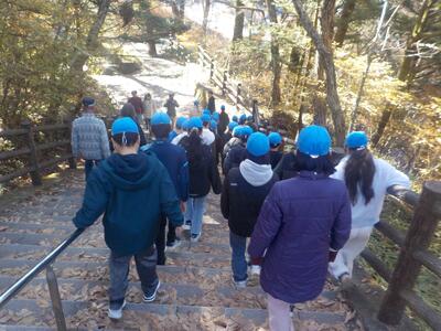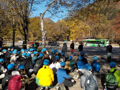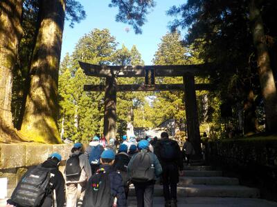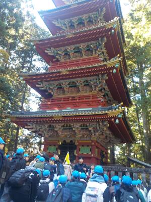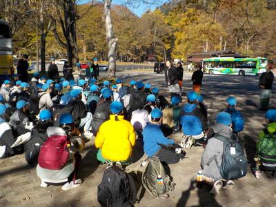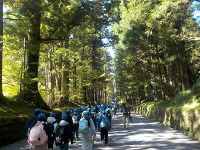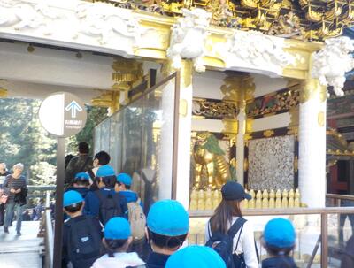 修学旅行2日目も天候に恵まれました。快晴、青空のもと、竜頭の滝を見学しました。力強い滝や美しい紅葉に秋を感じました。その後、いろは坂を下り、日光東照宮へ行きました。ここでは、グループ別行動を行いました。各チェックポイントをまわりながら、歴史に触れたり、数々の美しい彫刻を見たりすることができました。「公共のマナーを守ること」「周りを見て声をかけ合いながら行動すること」を意識して活動していました。