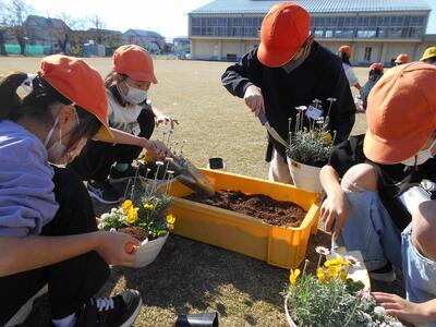 11月17日 3年花育教室 投稿: 鴻巣南小学校 (14:45) 鴻巣市や生産者さんのご協力のもと、3年生が花育教室を行いました。説明を聞きながら、3種類の花苗を寄せ植えをしました。花苗を丁寧にポットから外すと、根がたくさんあることに驚いている子もいました。また、花の名前や育て方も教わりました。これから冬を越して春まで大切にお世話し、きれいな花を咲かせ続けてほしいです。 Tweet -