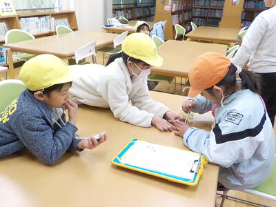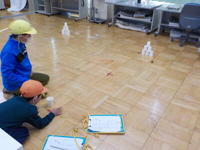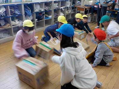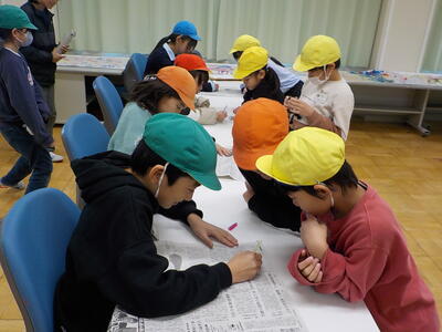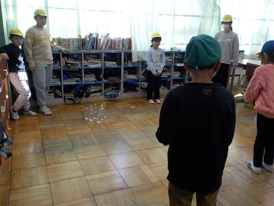 昼休みから5校時にかけて、「わくわくタイム」を行いました。縦割り班ごとに遊びを決め、色々な班の遊びをお互いに楽しむ時間です。各班を2つに分け、遊びに行くグループ、班の遊びを進行するグループを前後半で交代しながら、遊びを楽しみました。的当て、9マス鬼ごっこ、宝探し、ボーリング、風船バレー、ビーズつかみ等、様々な遊びがありました。遊びに行くときも、進行する時も、高学年が中心となり、下級生と一緒に活動しました。遊びの途中でキーワードを集めることも、とても楽しかったようです。