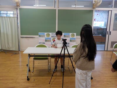今日の給食の時間は、計画委員会企画の生配信を行いました。司会進行とカメラワークは放送委員会です。生配信では、給食委員が献立の紹介、整美委員が清掃時間の様子について、JRC委員会が赤い羽根募金の取組について報告をしました。計画委員からは、恒例となった「あいさつMVP」の紹介です。MVP児童へのインタビュー動画も流しました。3学期は「相手の目を見て」をあいさつのポイントとして呼びかけていきます。