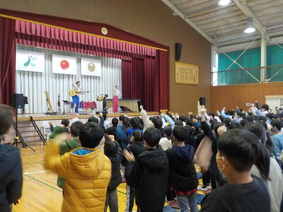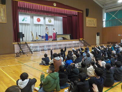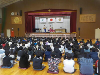 2月10日(火)芸術鑑賞会 投稿: 鴻巣南小学校 (02/10) 本日は、芸術鑑賞会を実施しました。南米の音楽を中心に、子どもたちのよく知っている曲も演奏していただきました。近くで演奏していただいたり、普段に目にすることのない珍しい楽器を紹介していただいたりしました。楽器クイズでは、実際に楽器を見せていただくと驚きの声も上がっていました。目の前での生演奏に、手拍子をしたり、一緒に体を動かしたりしながら、音楽を楽しむことができました。 Tweet -