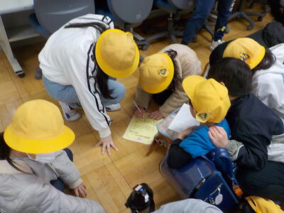 16日(月)の5時間目に来年度の通学班編成を行いました。地区ごとに集まり、新通学班のメンバー、班長と副班長、集合場所と集合時刻を確認しました。新1年生が入る班は、集合場所や集合時刻をお伝えするお手紙を作成しました。その後、新しい班での一斉下校を行いました。