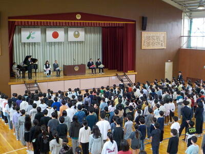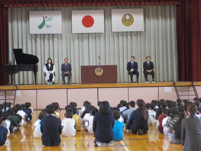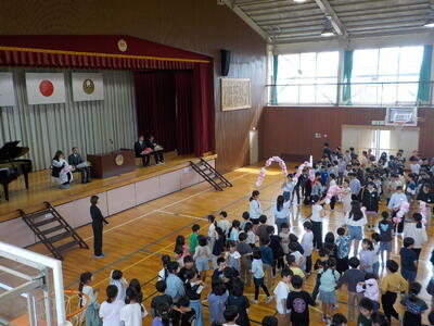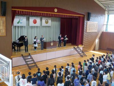 今日は離任式を行いました。南小を去られた先生方が、久しぶりに本校にいらしてくださいました。代表児童によるお手紙と花束の贈呈、南っ子全員による「離任式の歌」で感謝の気持ちを伝えました。先生方からも南っ子に向けた温かいメッセージをいただきました。最後の校歌合唱は、全員の気持ちが一つになって、力強く、そして温かく歌い上げることができました。先生方に教わったこと、先生方との思い出を大切にしながら、南っ子はこれからも頑張っていきます。