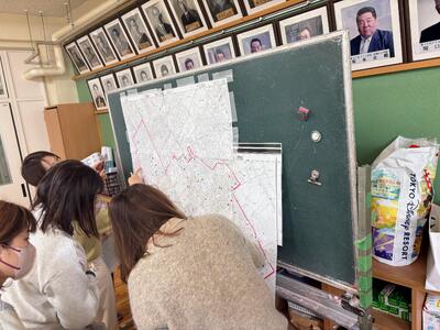 情報を共有し協力しながら場所の確認を行っています。