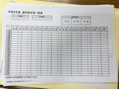こちらの用紙に新編成のリストを班ごとに記入します