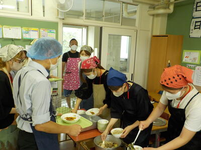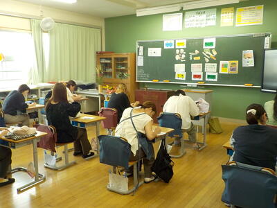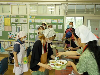 1年生保護者を対象に給食試食会を開催しました。栄養士から学校給食についての説明を行い、その後、保護者の皆様に配膳をしていただきました。試食の際には、栄養士に調理方法を聞いたり、栄養士から子どもたちの給食時間の様子を伝えたりしながら、本日の給食を味わっていただきました。ご来校いただいた保護者の皆様、ありがとうございました。