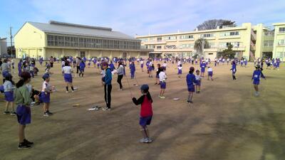今月のはつらつタイムは、短縄跳びです。縄跳び検定の級にあわせて、縄跳びの練習を行います。3,4年生は学年ごとに練習、1年生には6年生、2年生には5年生がサポートし、跳び方を教えたり、数えてあげたりしながら一緒に練習しました。5,6年生に声をかけてもらい、1,2年生も一生懸命練習していました。縄跳び検定は今月末までです。一つでも上の級を目指して頑張っています。