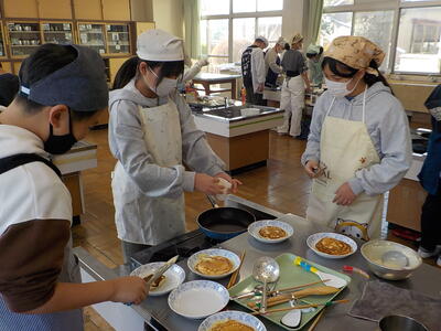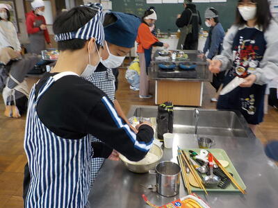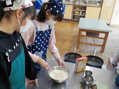 本日は、6年生が調理実習でホットケーキ作りを行いました。友達と協力して、取り組んでいました。トッピングも班ごとに工夫をし、上手に焼き上げることができました。でき上がったホットケーキは、感謝のメッセージを添えて、職員にも届けてくれました。